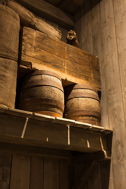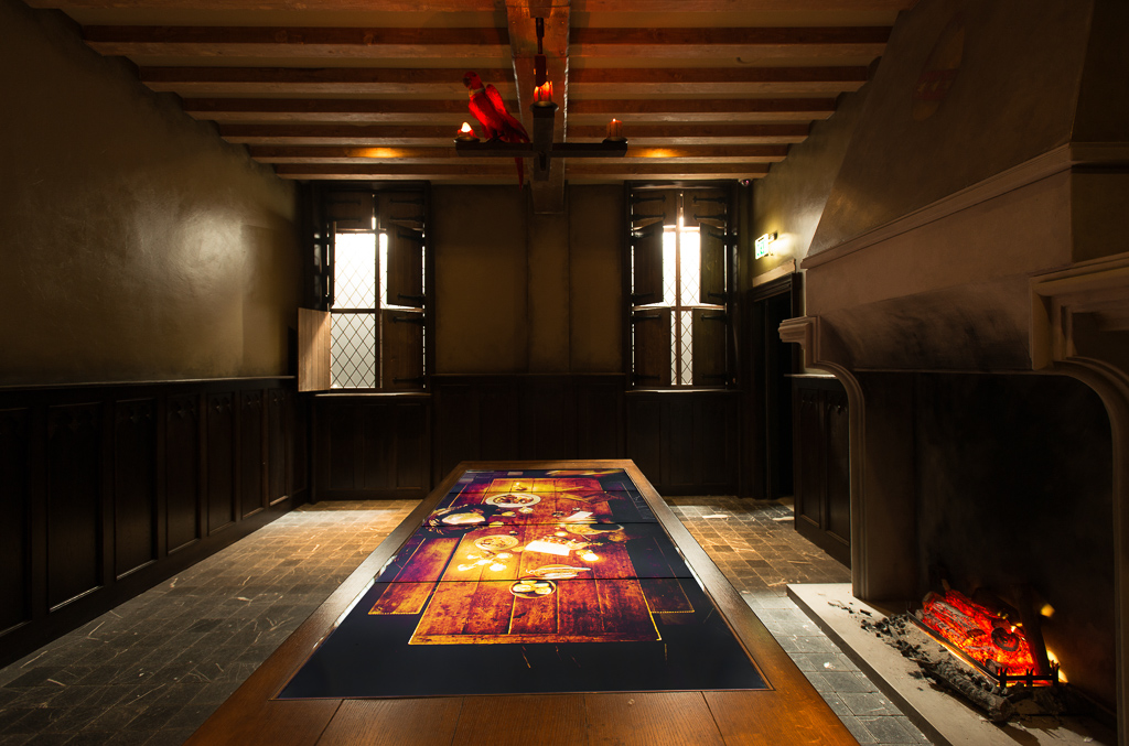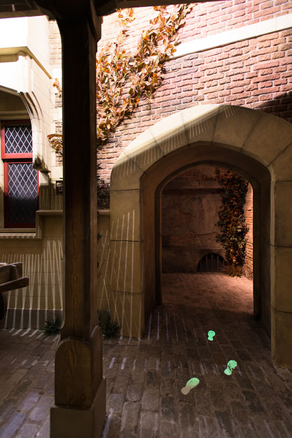 Finished "the crafts market" exhibit with illuminated footsteps in the ground