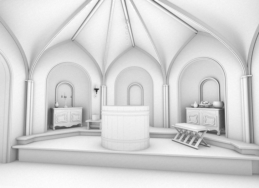 Spatial 3D design of the "Van Eyck studio" exhibit