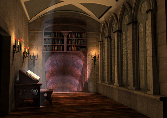 Detail rendering of the introduction room´s decor