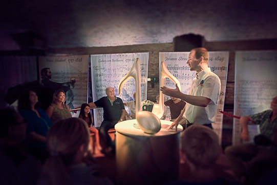 The finished music room with fascinated visitors