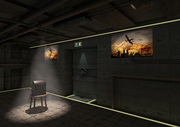 Design rendering for the Bunker, a multimedia effects show putting the visitor right into WW2