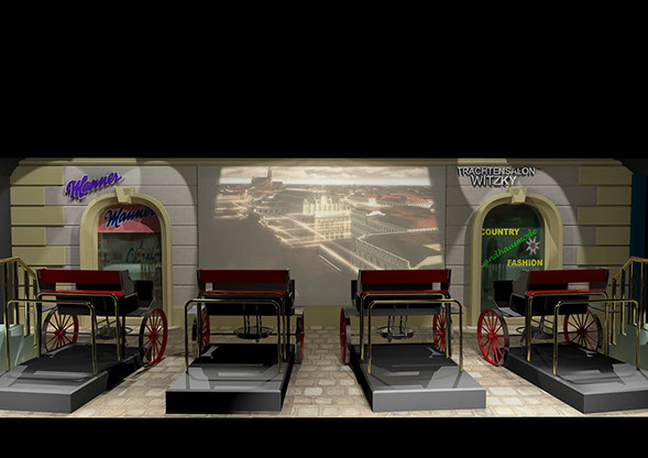 Design rendering of the finale- the coach ride experience with a virtual flight over Vienna